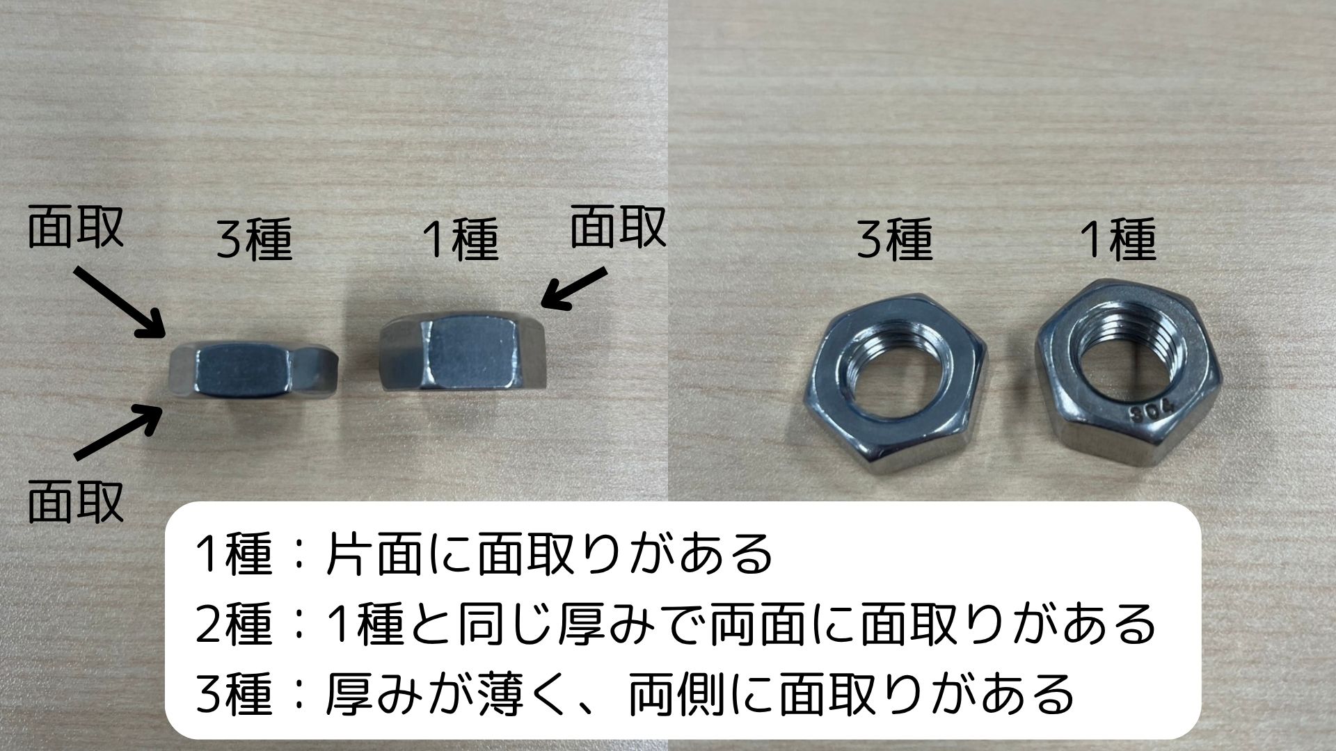 最後に、ナットのみ1種、2種、3種という違いがあるということを覚えておきましょう。