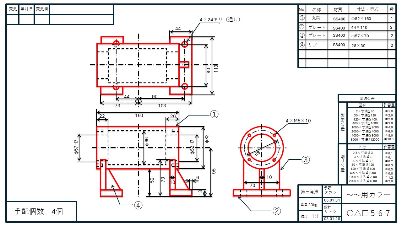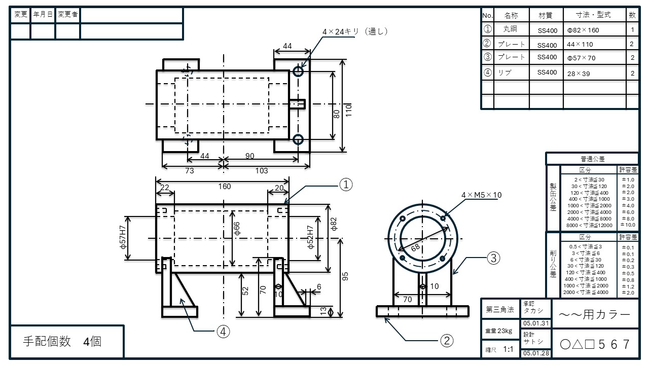 ※本記事は、この機械図面のルール(見方)を理解している前提で進めます。