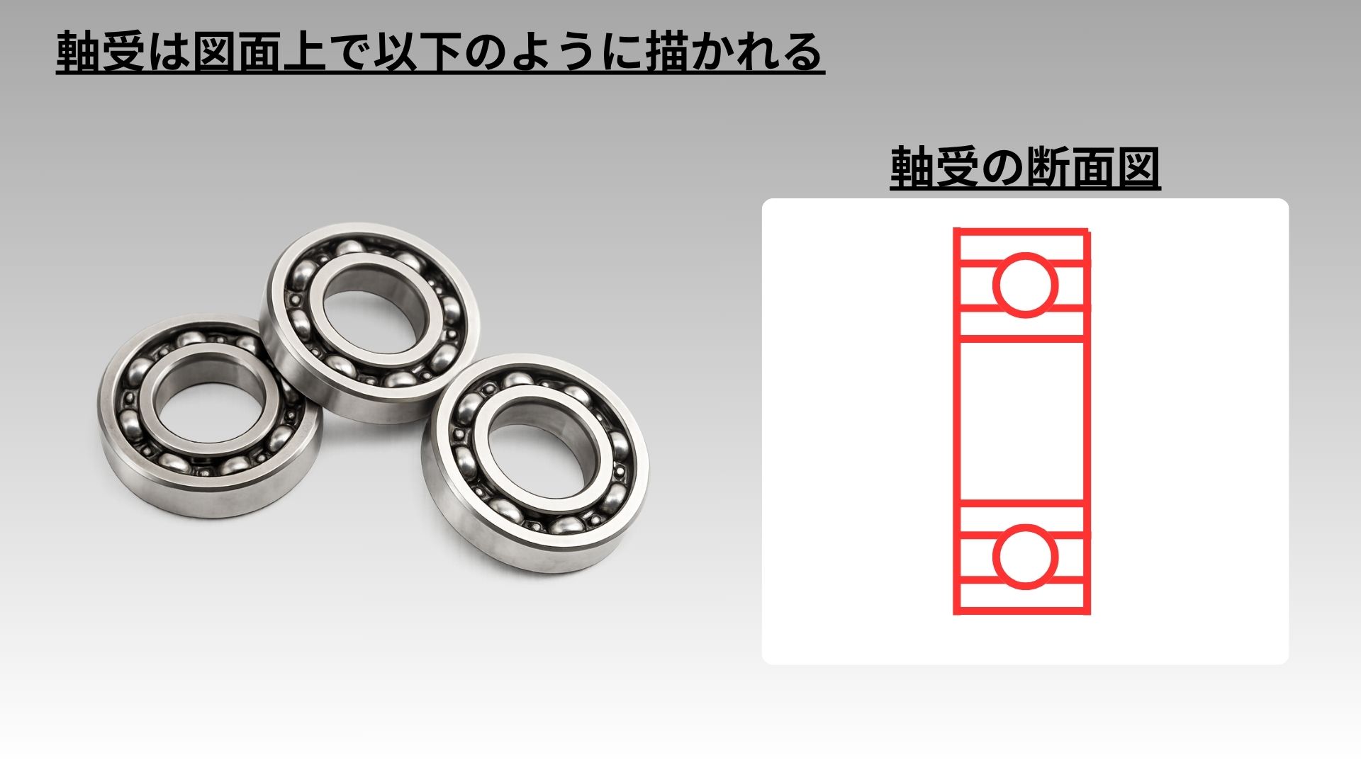 - この形状を図面で見たら「ベアリングだな」と思うようにしましょう!