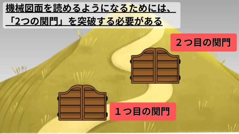 そもそも、機械図面を読めるようになるためには、「2つの関門」を突破する必要があります。