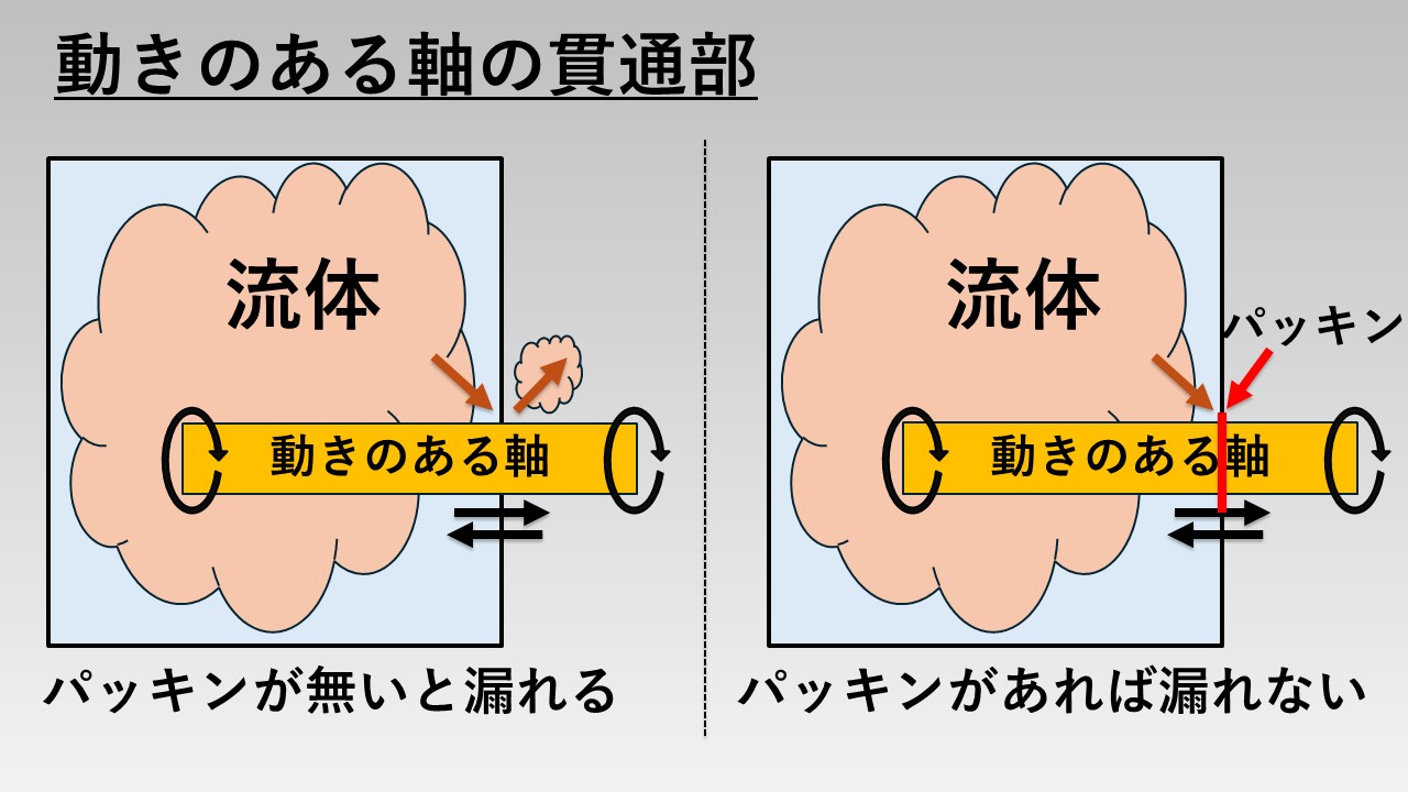 動きのある軸の貫通部にはパッキンが必須