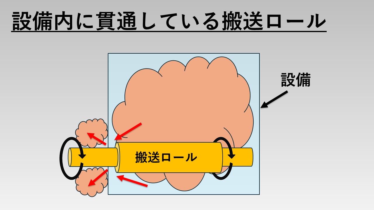 - 設備内に貫通している搬送ロール(回転運動)
