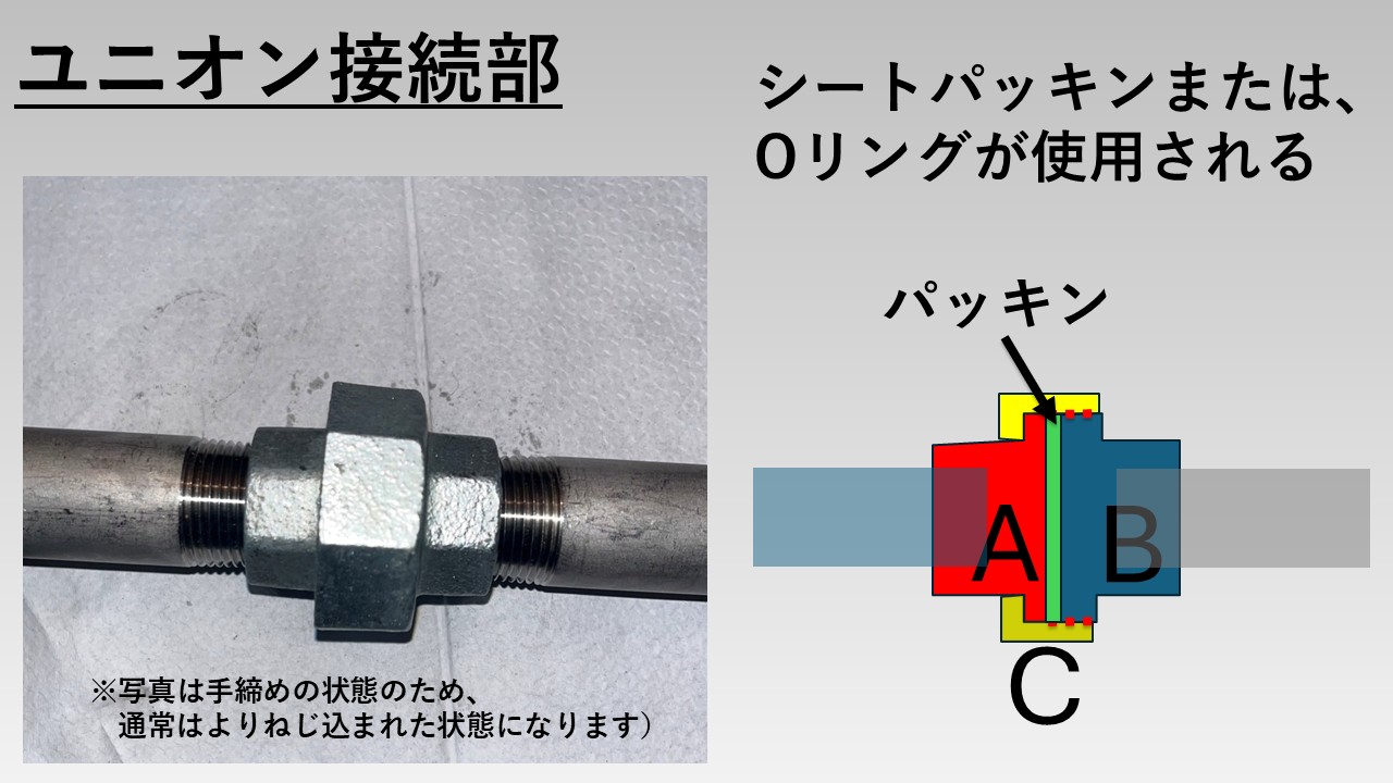 ユニオン接続にはパッキンが必須