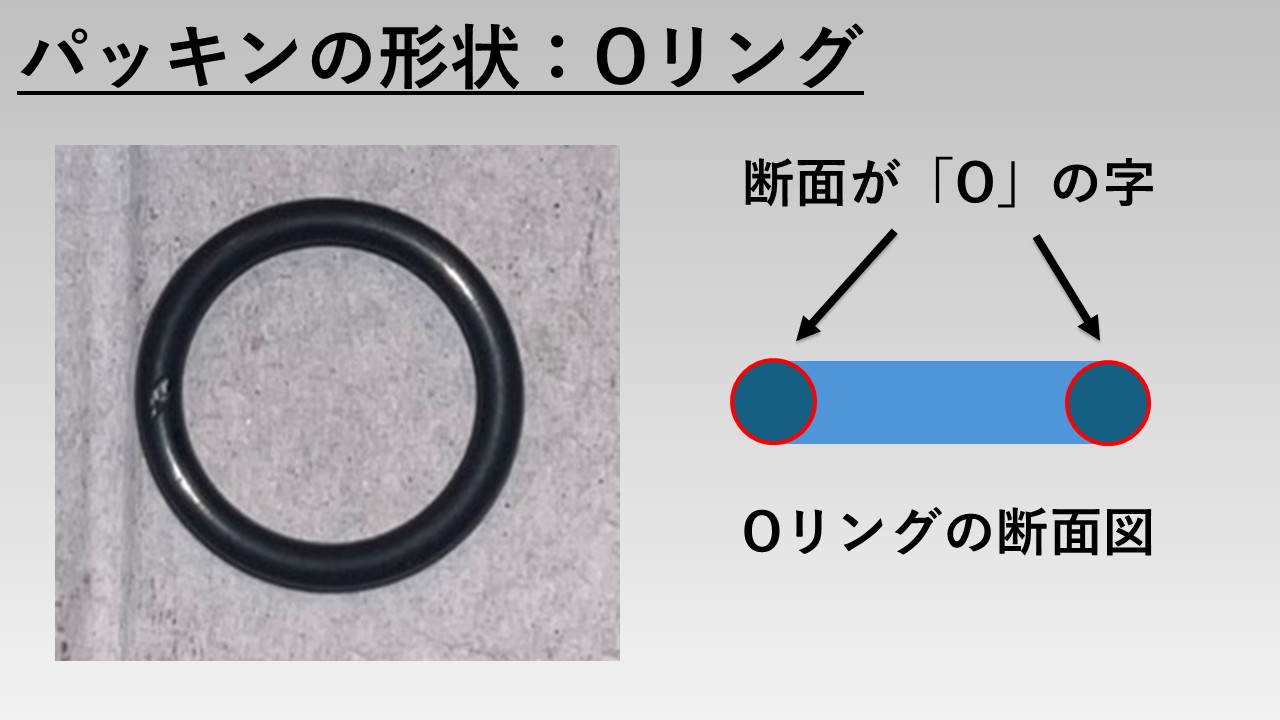 ※「Oリング」以外にも動きのある軸の貫通部に使用されるパッキンは存在します。が、多種多様なパッキンが存在する、かつ、皆さんが最低限知っておくべき内容ではないため、本記事では取り上げて解説はしていません。