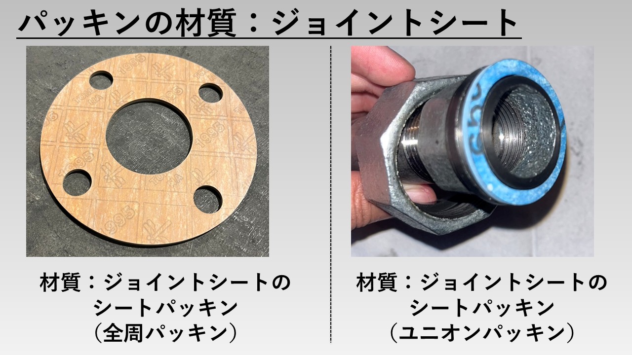 材質がジョイントシートのパッキンは、基本何にでも使える印象ですが、高温の流体には使えないということを覚えておきましょう!