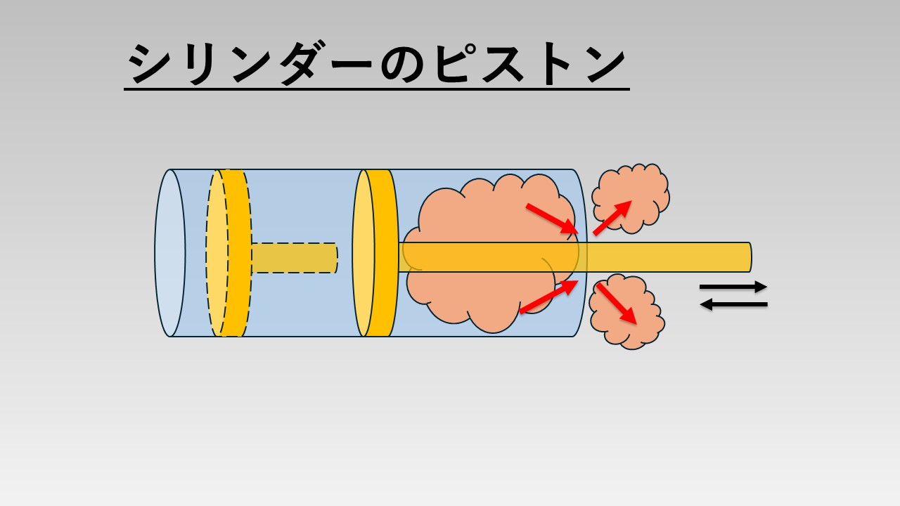 - シリンダーのピストン(往復運動)