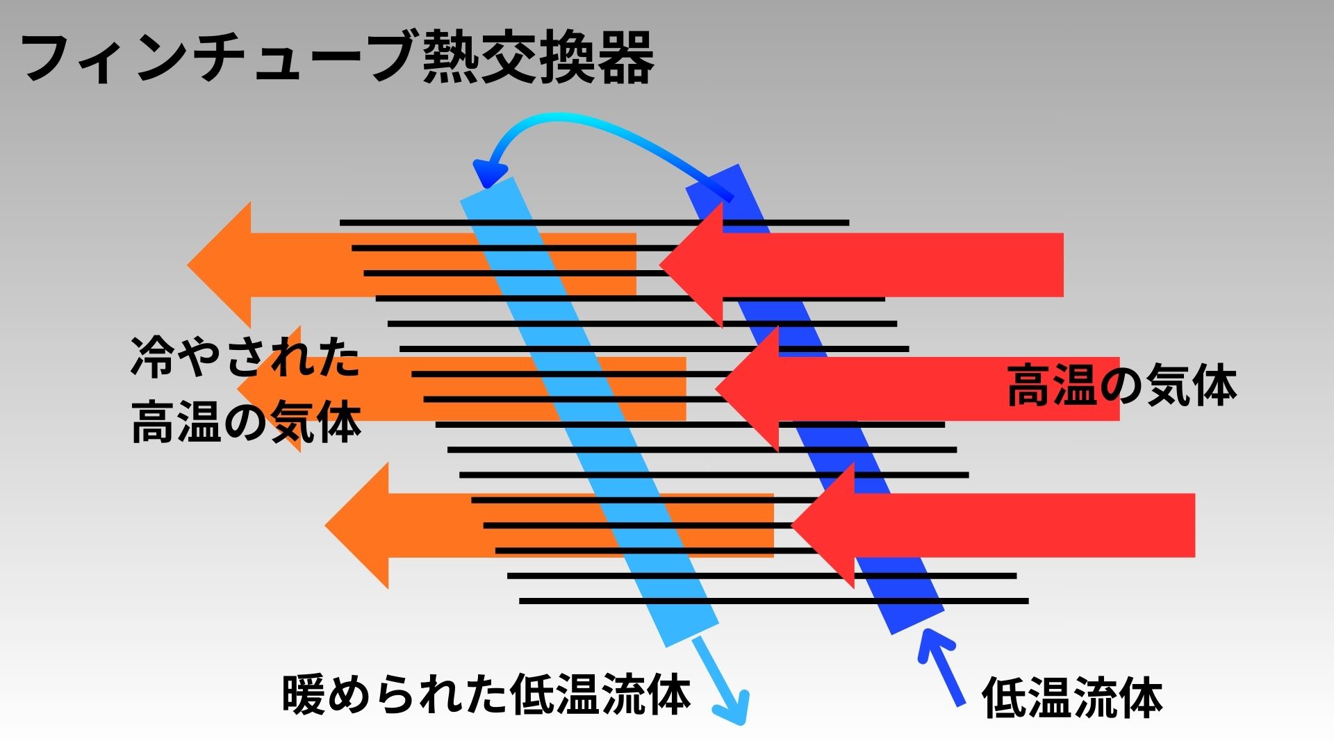 • (上図の場合は、低温流体)