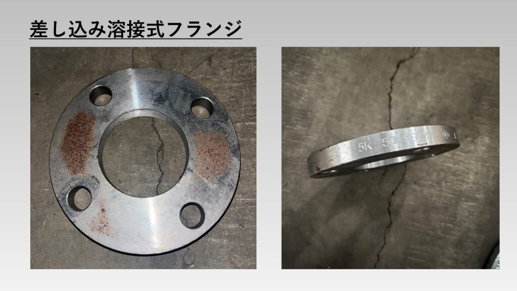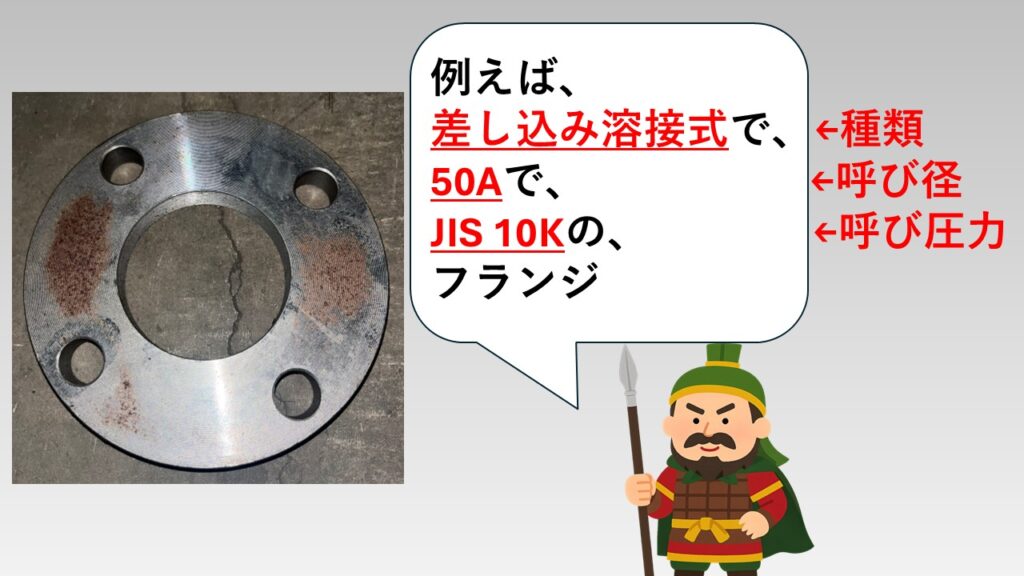 「差し込み溶接式(種類)で、50A(呼び径)で、JIS 10k(呼び圧力)のフランジ」