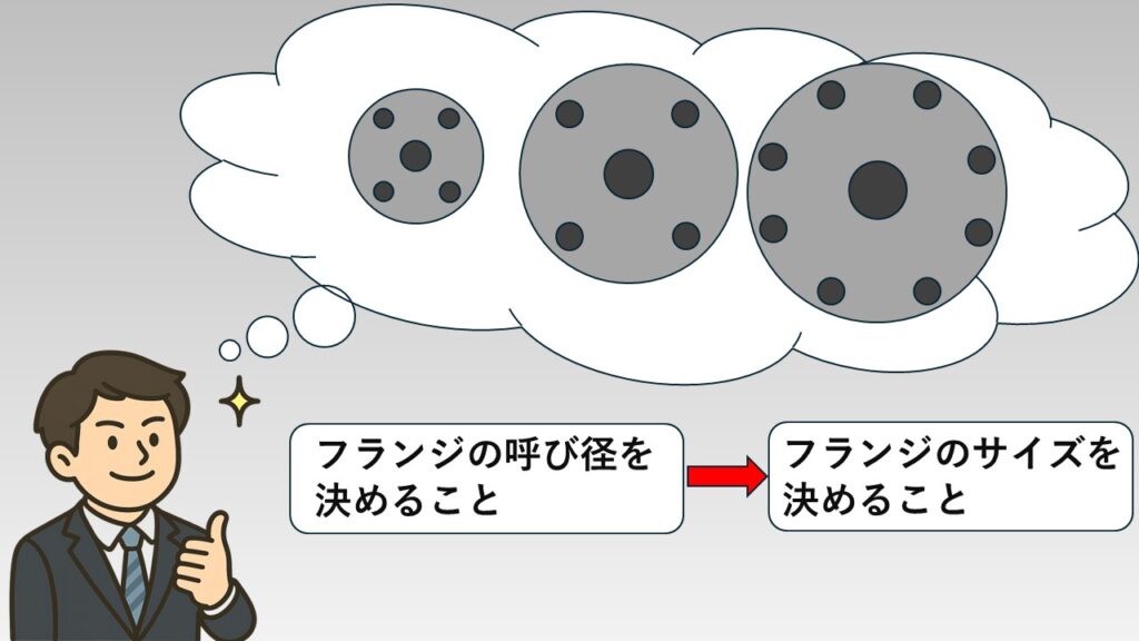 フランジが成り立つ3つの要素の1つとして「呼び径」を決めることで、フランジのサイズが決まる