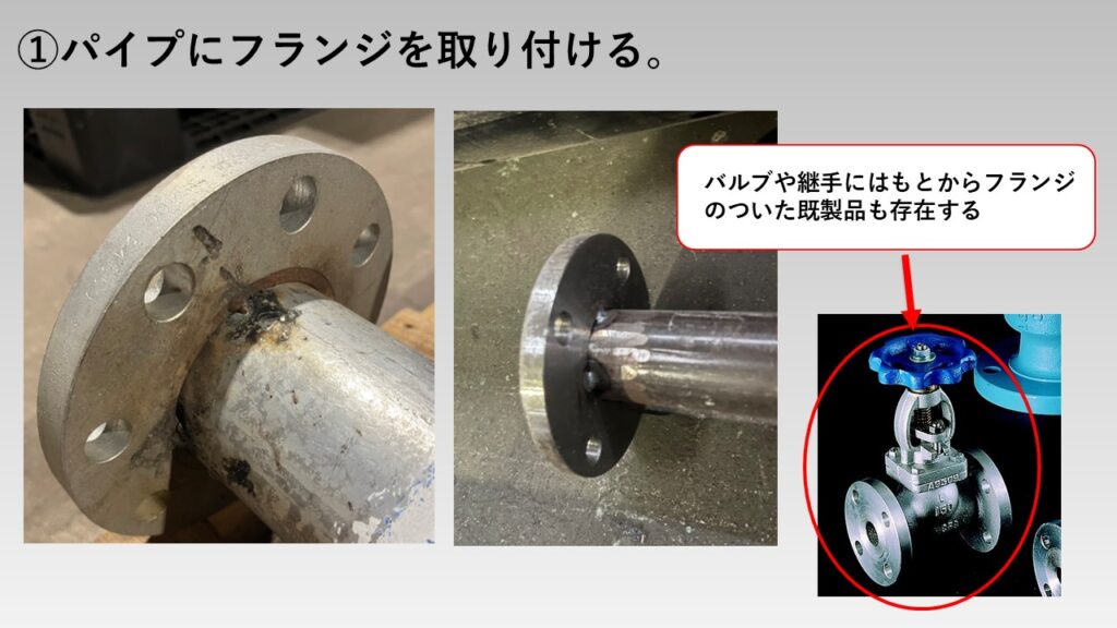 - 継手やバルブなど、もともとフランジがついているタイプの配管部品も存在する