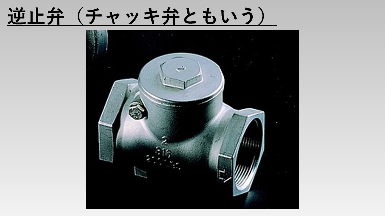 - 逆止弁(チャッキ弁ともいう)
