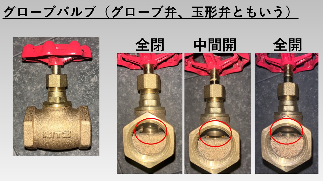 - 水道の蛇口はグローブバルブ