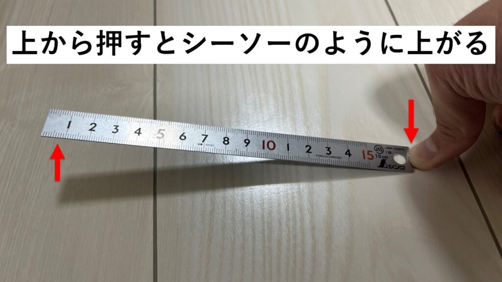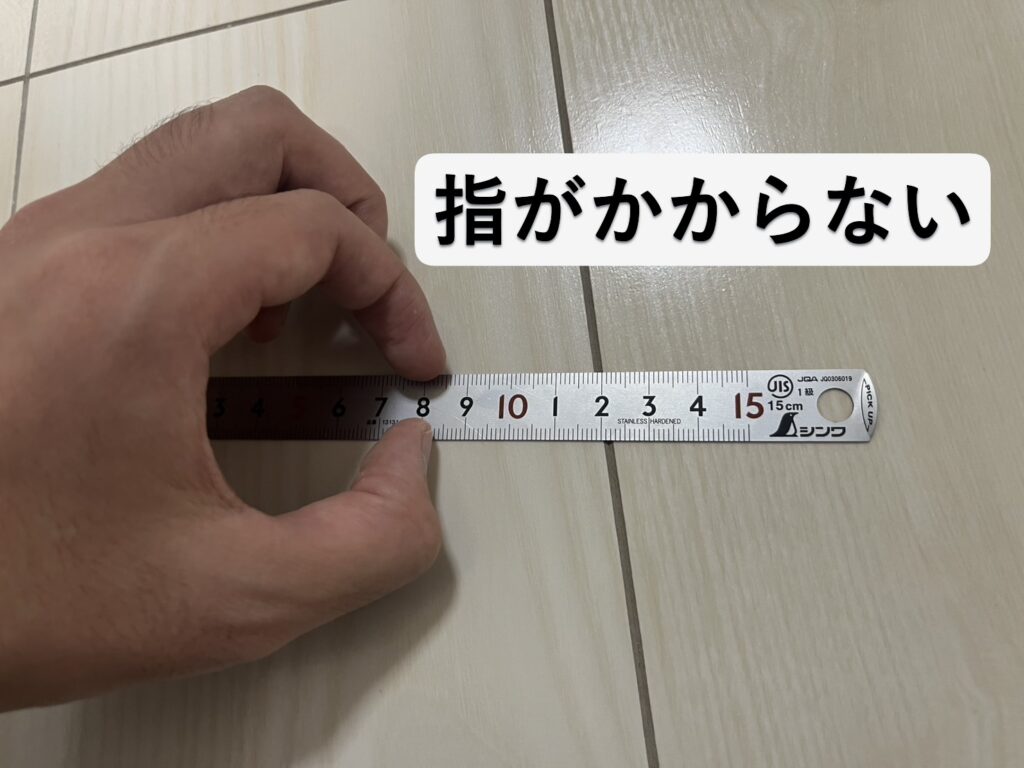 置いた直尺を拾おうとしても全然拾えないんです!なぜなら直尺はめちゃ薄いから!全然指がかからず拾えません。