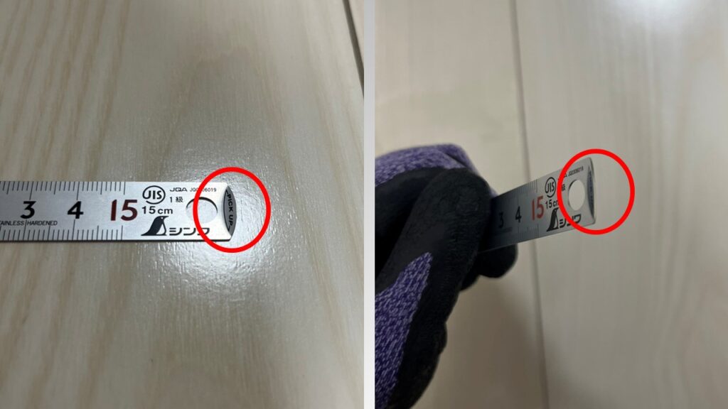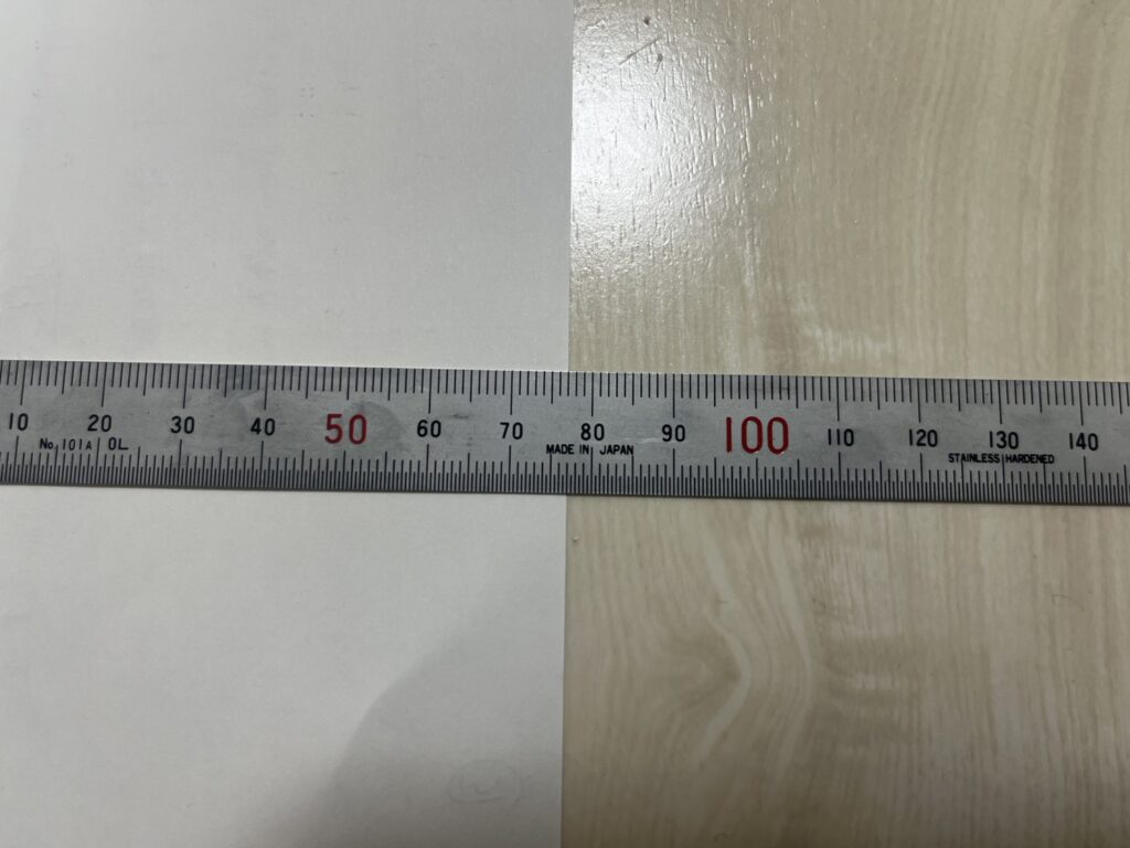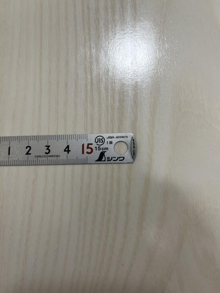 また、同僚の0.5mm単位の直尺を借りて寸法を測定したこともありますが、逆に目盛りが細かすぎて寸法が読みづらいと感じたので、私は1mm単位の目盛りの方がおすすめします。