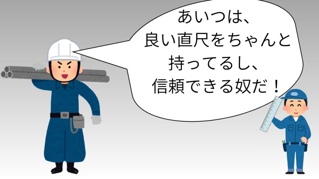 さらに、皆さんがその直尺を使用することで、設計者や現場の職人から「〇〇は、良い道具をきちんと選んで使う、信頼できる人間だ」と思われ、信頼が高まること間違いなしです!