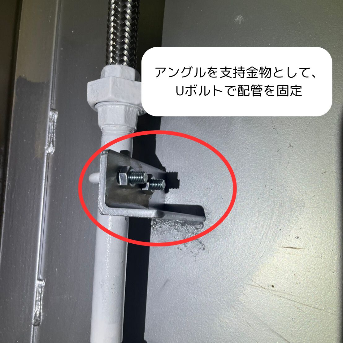 - アングルは、断面がL字型をした鋼材で、配管の支持金具や補強材として非常に頻繫に使用される。(←現場で頻出です)