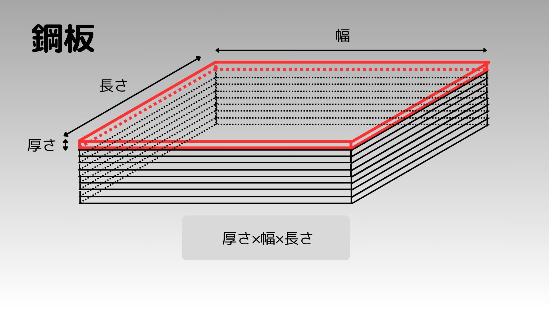 - 鋼板は平鋼のように棒状ではなく、板状。