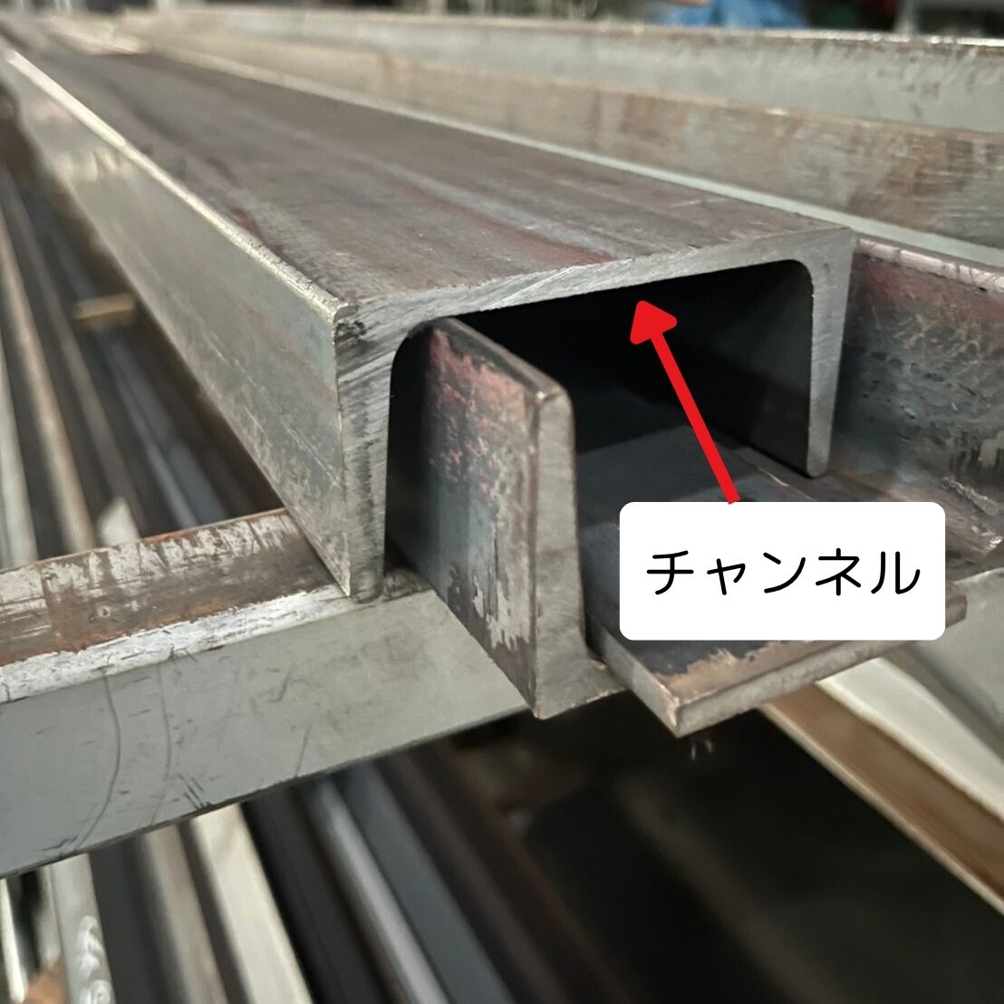 - チャンネルは断面が「コ」の字型になっており、主に補強材や支持フレームとして使用される。(←現場で頻出です)