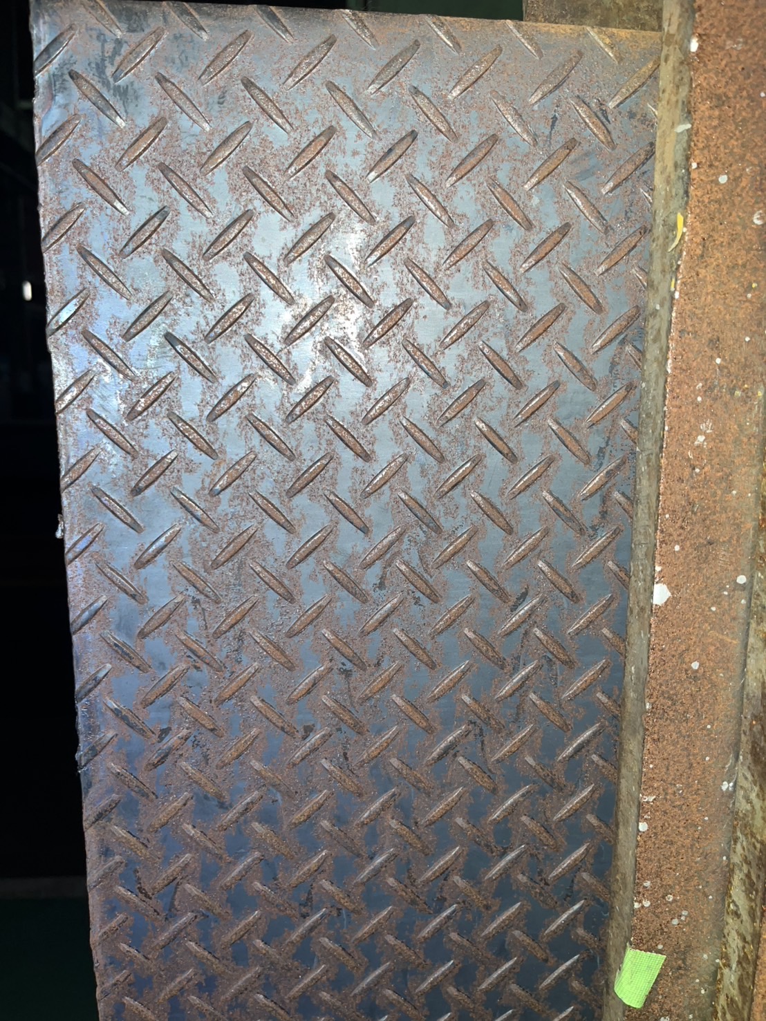 - 表面に滑り止め模様が入った鋼板で、階段や側溝の蓋などで主に使用される。